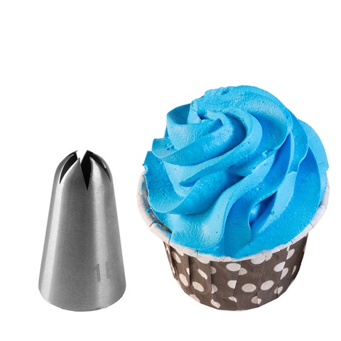 Насадка 1B используется для декорирования капкейков и тортов, создания бордюров, розеток, звезд из крема и айсинга. Также она прекрасна в работе с зефиром и меренгой.
